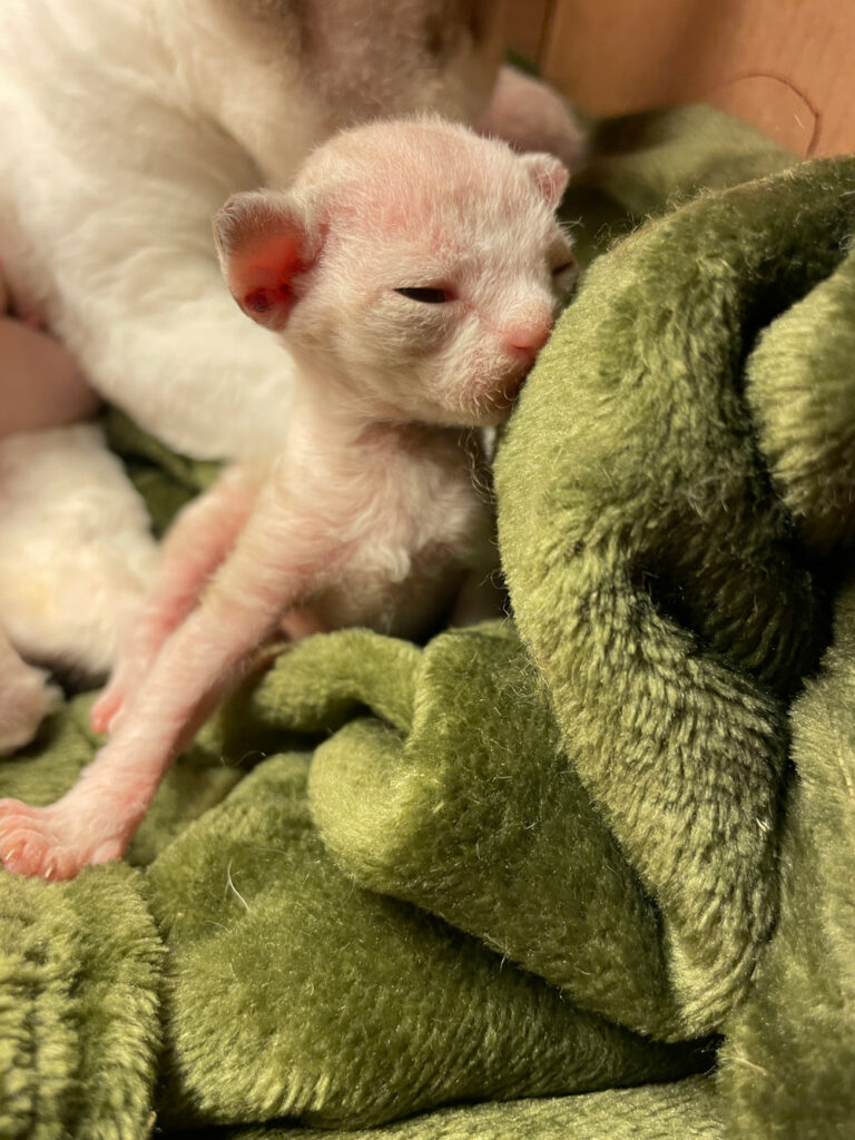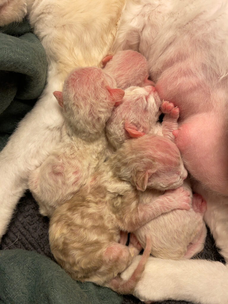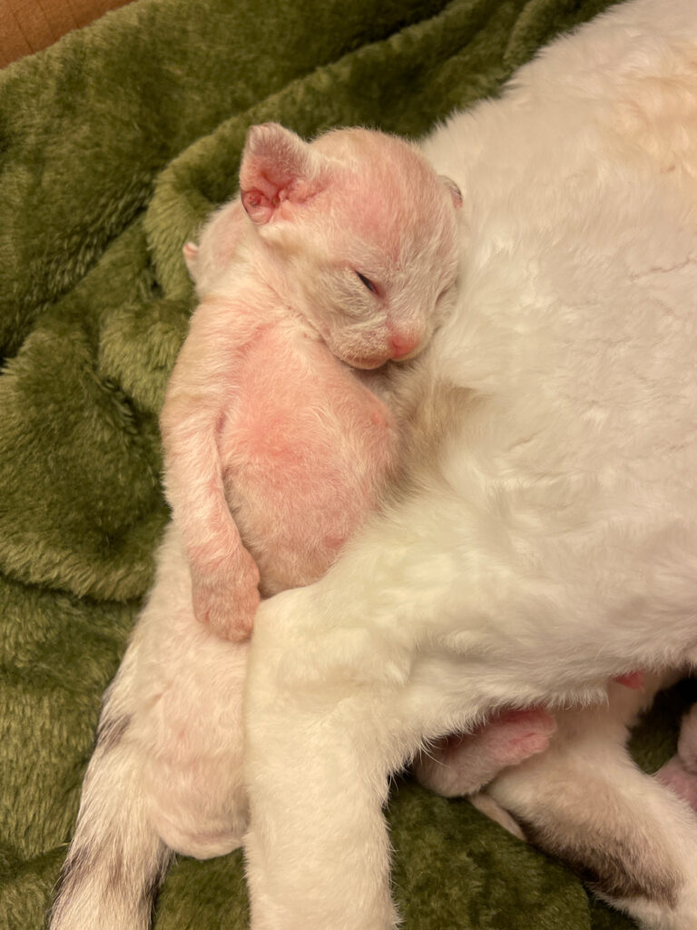 Den 2:a oktober 2025 föddes kull 3.0. Det tog två dygn för alla att komma ut och en hona överlevde tyvärr inte, men tre honor och en hane blev det tillslut. Hanen är helvit och honorna vita med mönster som träder fram mer för var dag. Alla får blå ögon.